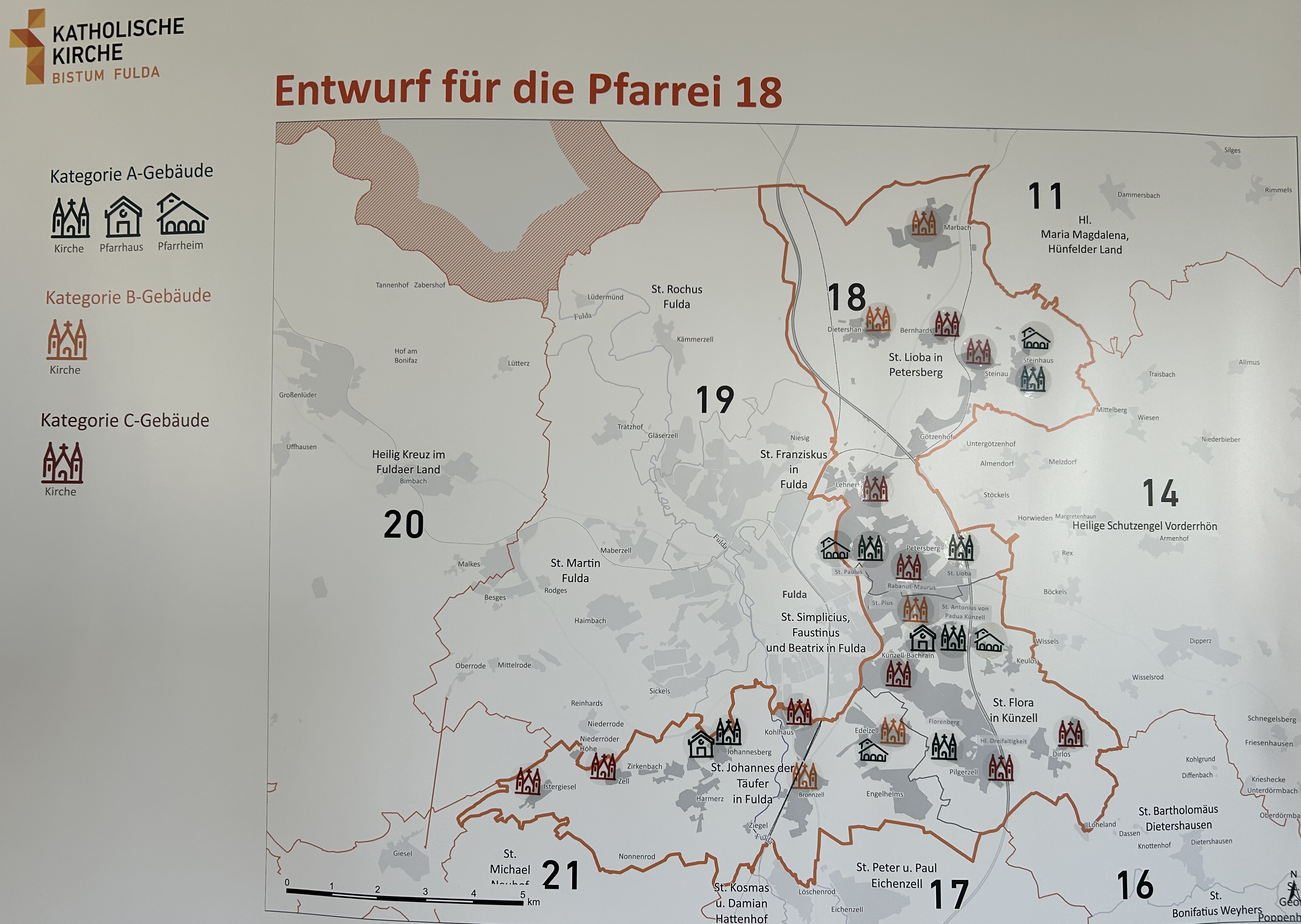Auf ein Immobilienkonzept für die zukünftige "Pfarrei Nr. 18" können sich die Pfarreien (Petersberg, Künzell und Johannesberg) jedoch bereits vor der Fusion einigen.